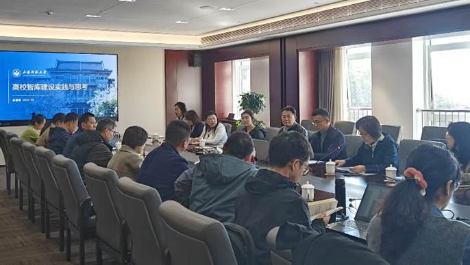 2025年10月23日上午,人文社科处组织召开高校智库建设经验交流会。山东师范大学社科处处长、智库中心主任高景海应邀作“高校智库建设实践与思考”专题报告。会议由人文社科处处长张嵩主持,部分学院和科研机构负责人及教师代表参加会议。