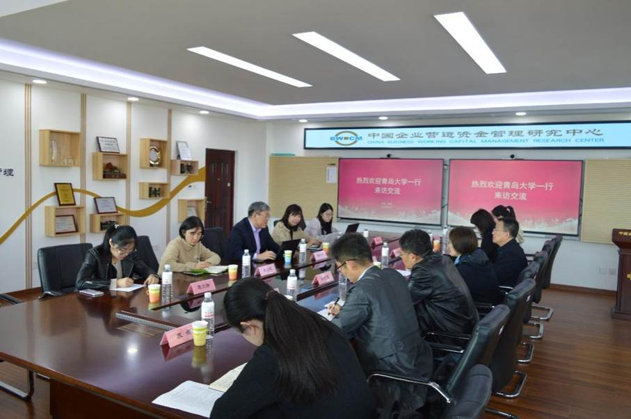 中国海洋大学中国企业营运资金管理研究中心主任王竹泉教授对我校一行到访表示热烈欢迎,详细介绍了中心的建设历程和产教协同、理论实践一体化的运行机制,分享了中心立足学术研究、引领理论创新,开展实践调查,积累数据库、案例库,促进教学、服务社会,形成资源平台等智库建设经验。
